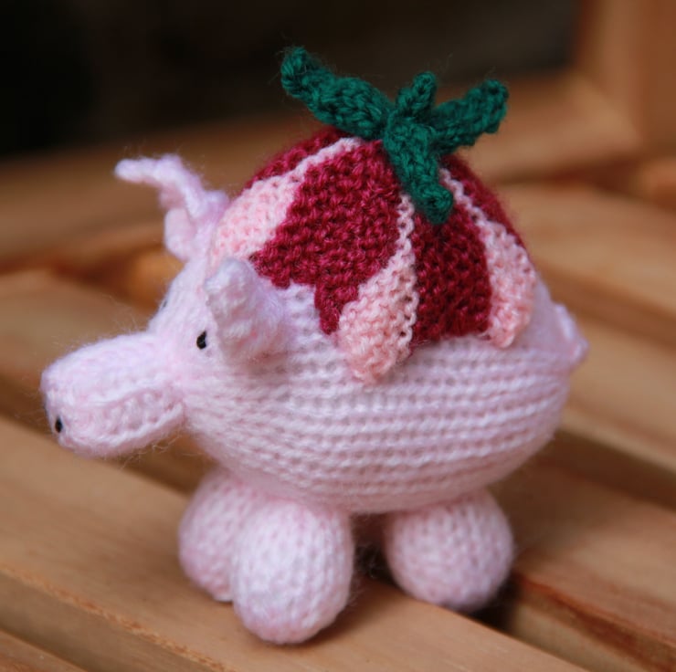 A cute little piggy with a petunia bell hat to celebrate Spring!