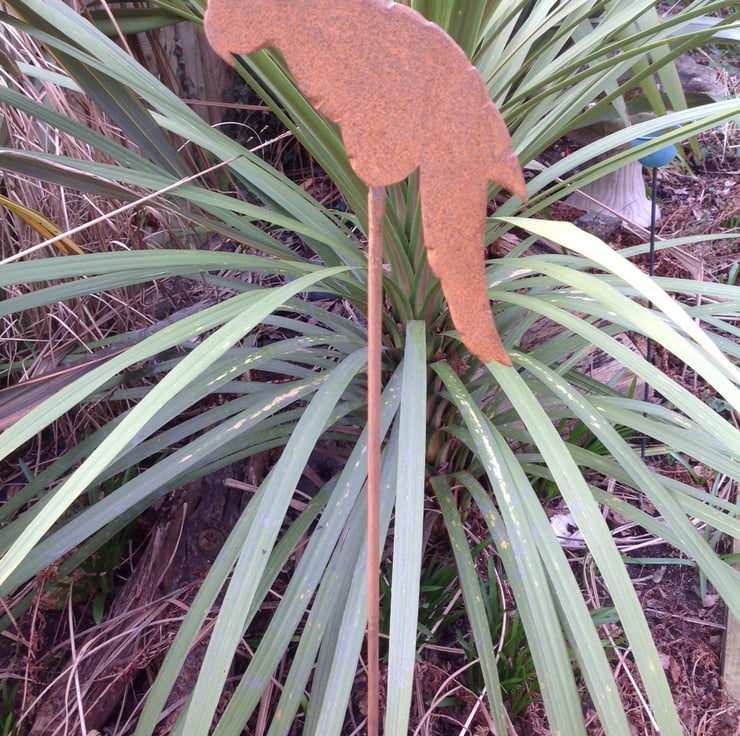 A decorative rustic metal plant support crafted from mild steel. The sculptured plant support is approx 36". Each is individually made so there are slight differences between each.