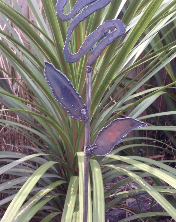 A decorative rustic metal plant support crafted from mild steel. The sculptured plant support is approx 34". Each is individually made so there are slight differences between each.