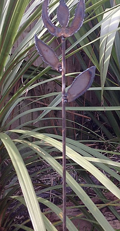 A decorative rustic metal plant support crafted from mild steel. The sculptured plant support is approx 34-36". Each is individually made so there are slight differences between each.