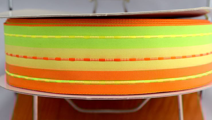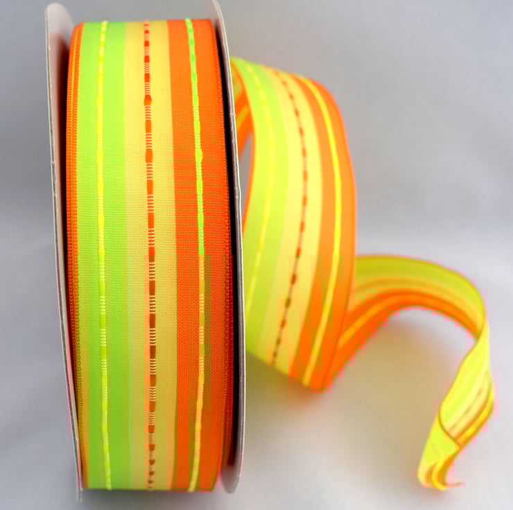 This is a listing for 2 Meters of High Quality 38mm Wired Ribbon in a Yellow, Green and Orange Stripy pattern this is ideal for bow making and other craft projects like Easter/ Summer too.