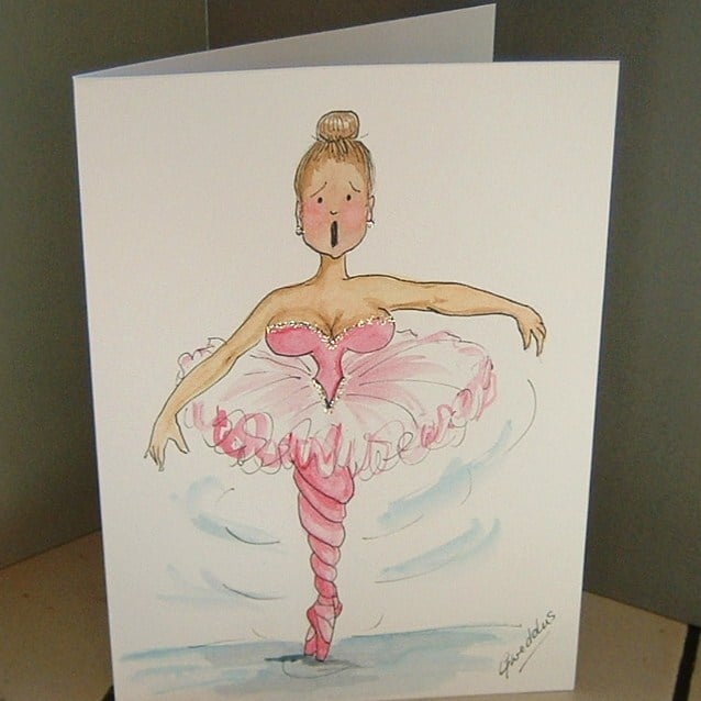 This is an original hand painted greetings card. It has been created using quality materials. It will come in a clear polybag to protect it. This is an original painting and NOT a print. The card measures 7x5" and comes with a quality white envelope. The inside of the card has been left blank for your own message. The painting is watercolour, so care should be taken not to get it wet. It also contains glitter.
