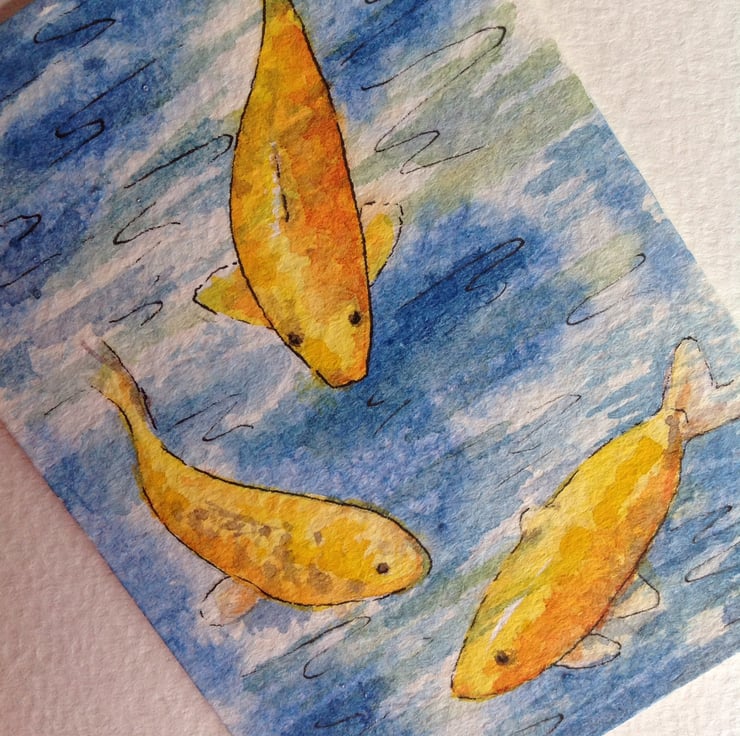 I think Koi carp looking amazing as they move through the water, with flashes of gold, white and deep yellow. I've tried to capture some of that movement in this little watercolour.