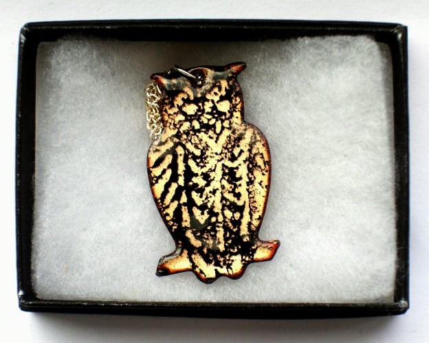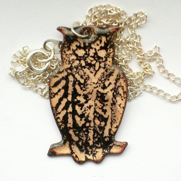 The owl shape lends itself to a naturalistic treatment and this is supported by the way the enamels lend themselves to portraying the bird's plumage. It would be impossible for me to replicate any one owl so it is always fun for me to work on the variations of the design and for customers to pick over the stock to find the one that appeals to them.