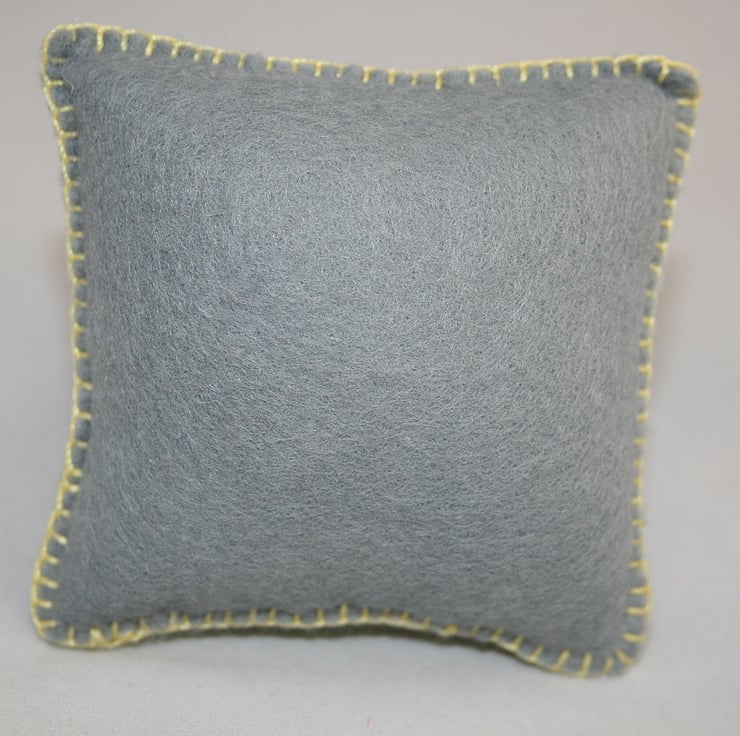 The back of the pincushion is grey 'eco' felt. The pincushion is gently stuffed with polyester filling.
