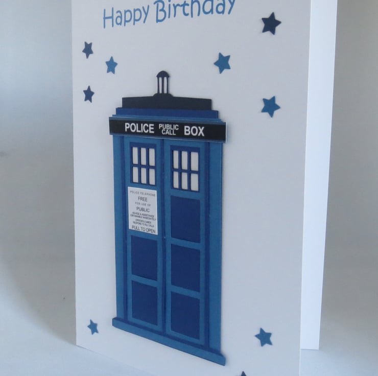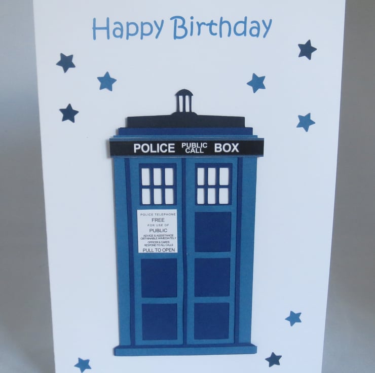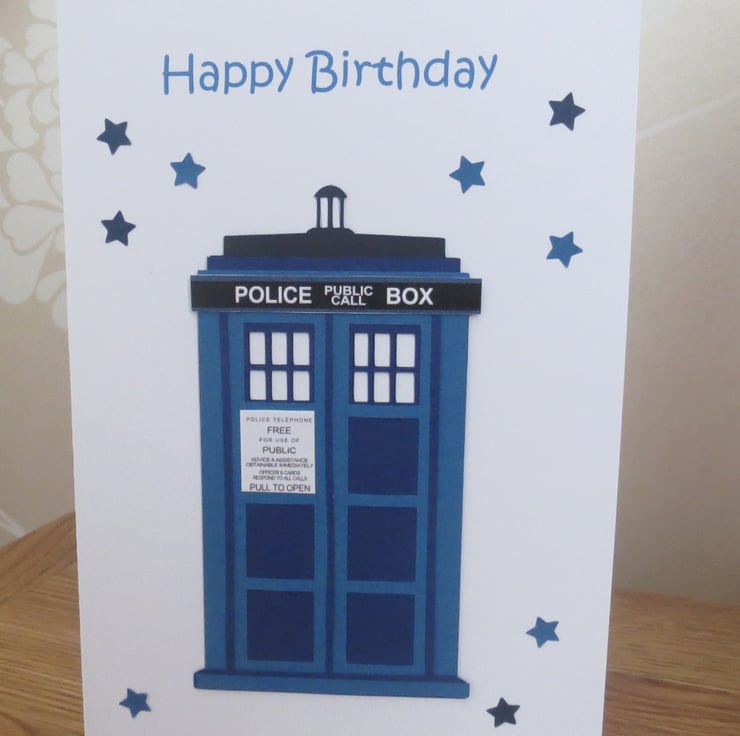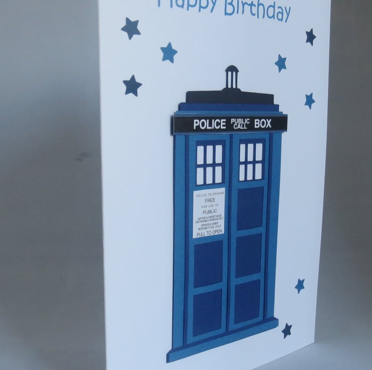 Handcrafted Birthday Card featuring the Tardis from Dr Who
