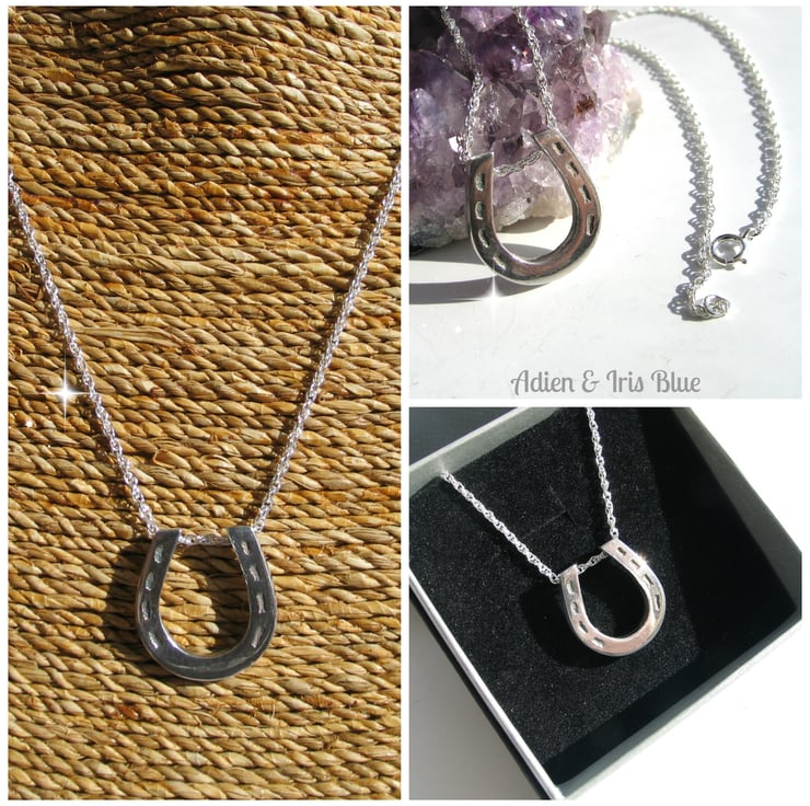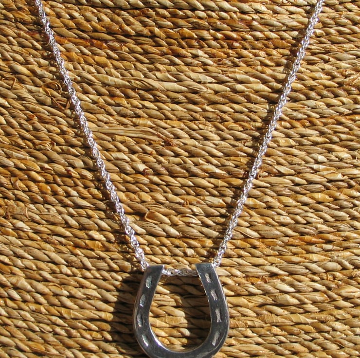 These necklaces are unique as each piece is individually handcrafted. The Horseshoe is approx 3/4 inch deep and supplied with an 18 inch sterling silver rope chain, if you would prefer a 16 or 20 inch chain just leave a note during checkout or message after purchase.