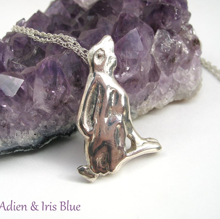 Moon Gazing hare in 925 Sterling Silver by Iris Blue.