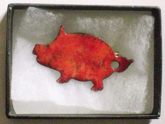 The pig shape measures 39mm, snout to tail, 21mm ear-tip to trotter.