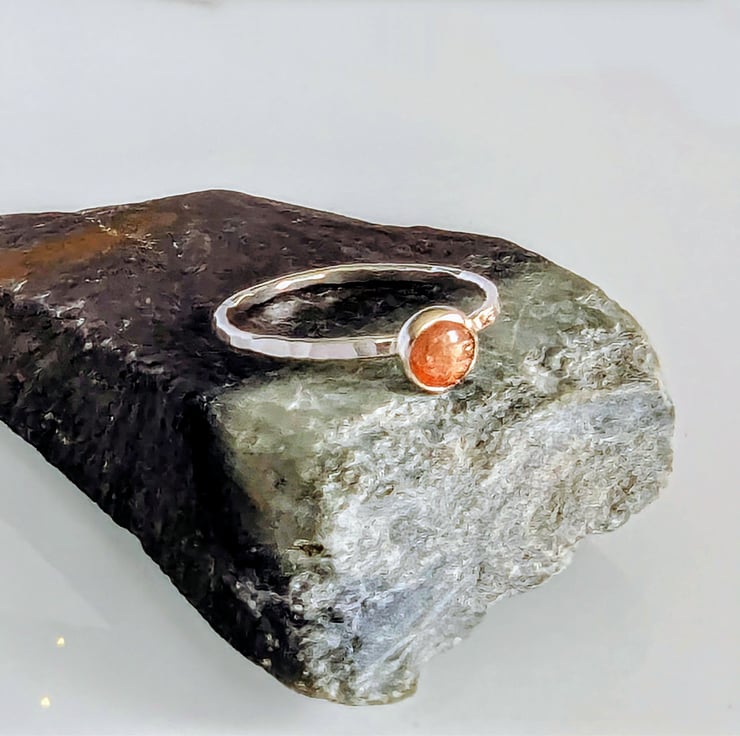Recycled Sterling Silver Sunstone Handmade Skinny Ring