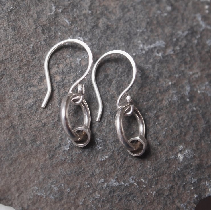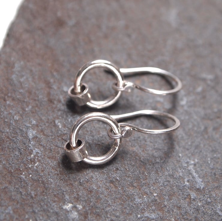 Sterling silver ring hoop earrings, small dangle earrings ideal for everyday wear.