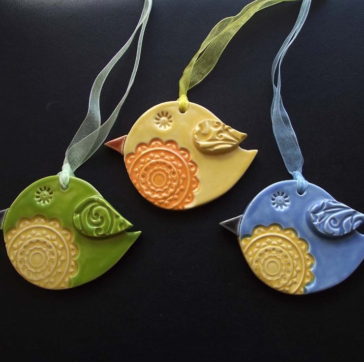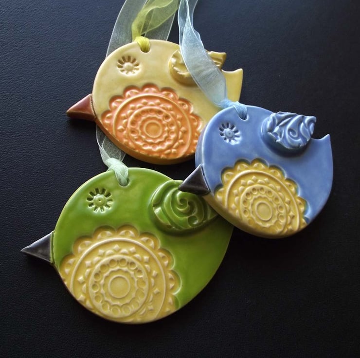 Each bird measures 7.5cm x 5.5cm and is glazed on the front only - the back is the plain white eathenware clay colour.