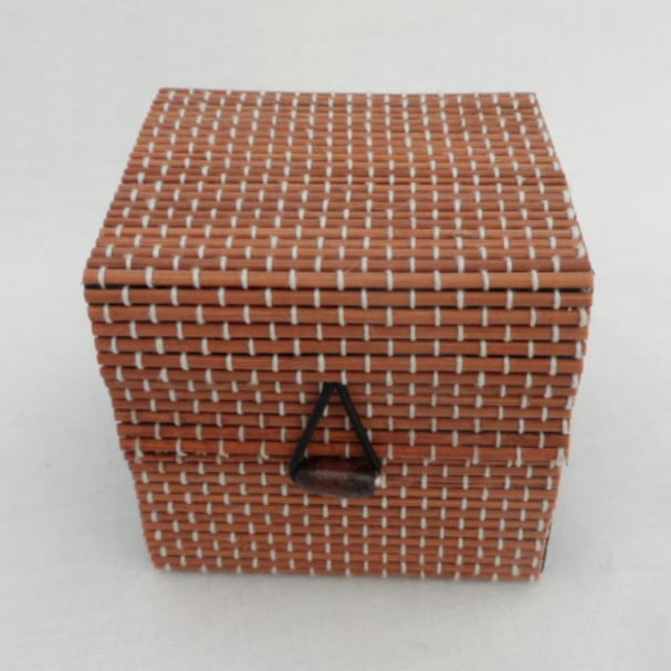 A gorgeous needle felted ornament contained within a bamboo box.