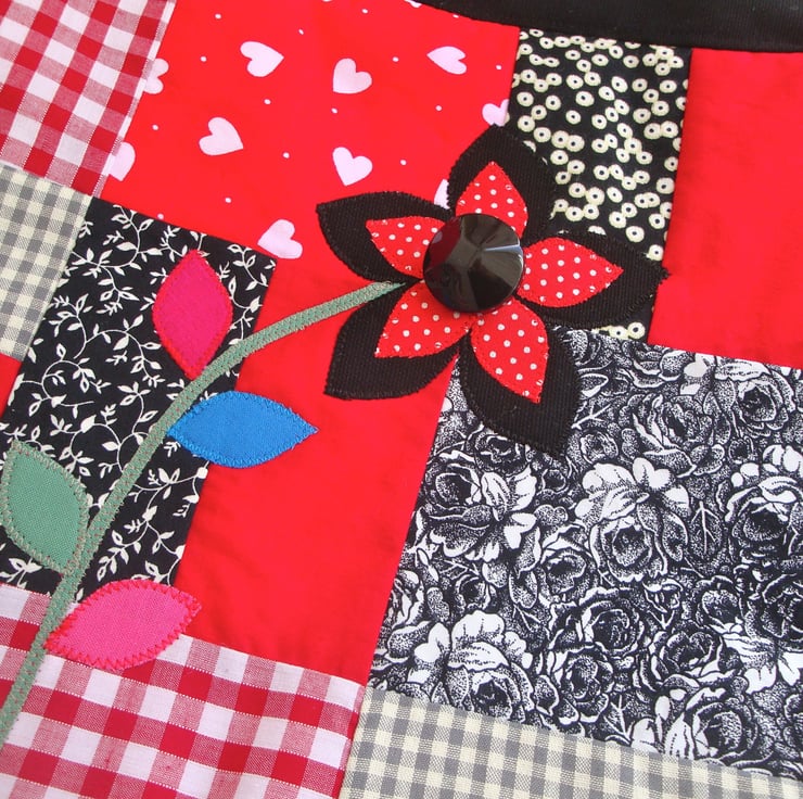 I appliqued a funky flower to the front , and embellished with a large black button.