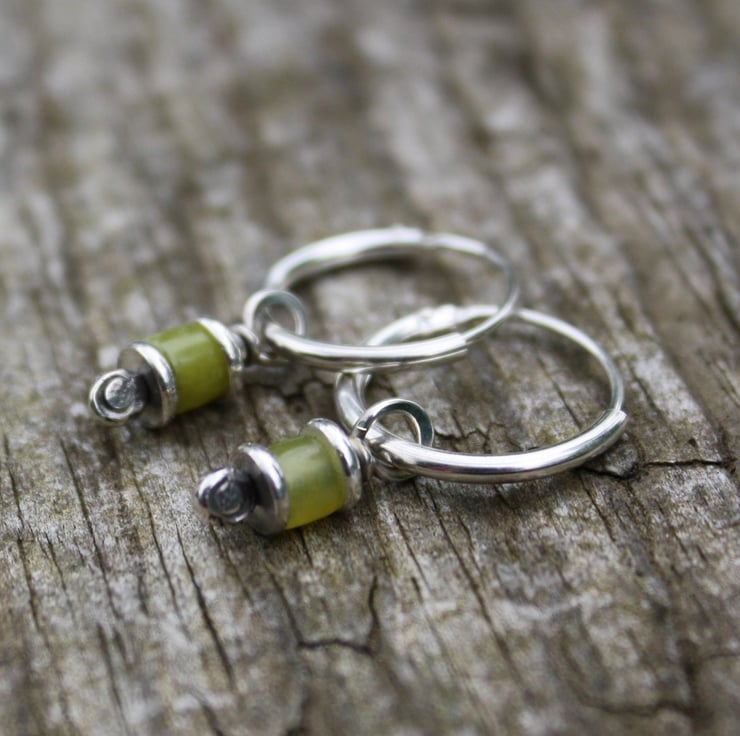 Forged sterling silver pins have been threaded through 5mm silver washer beads and solid silver tube beads. The metal has been oxidised dark and the highlights brightened and burnished.