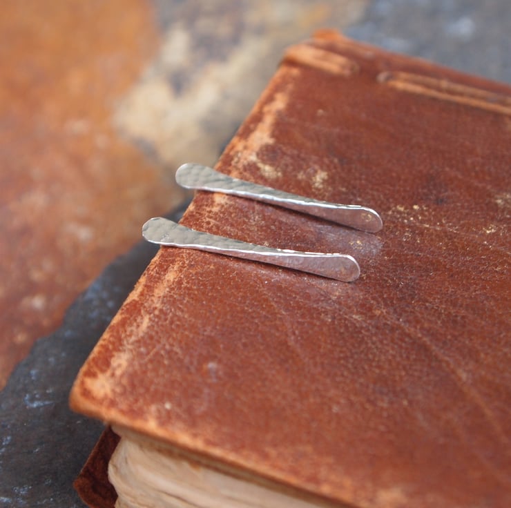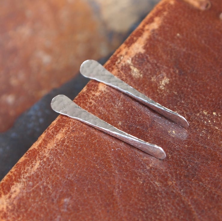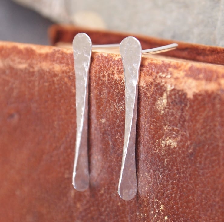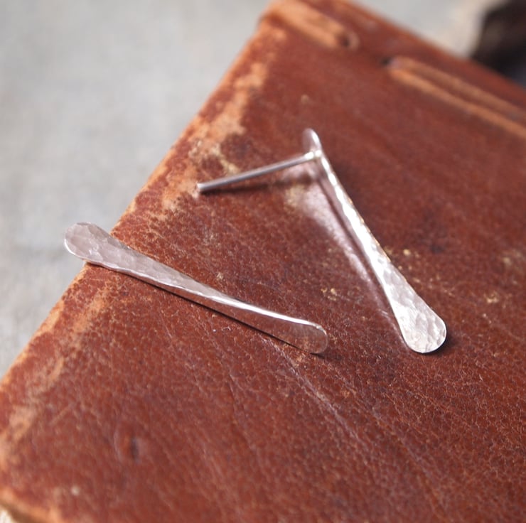 These little earrings have been forged in different directions to give them a lovely twist. Further hammering adds a texture to the surface that really catches the light and makes them sparkle. They have been burnished to a bright shine to finish.