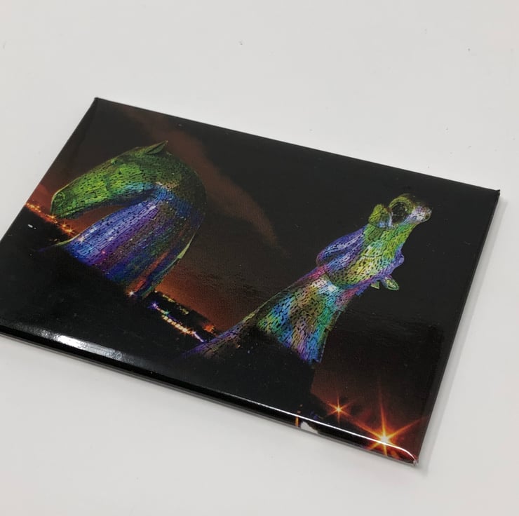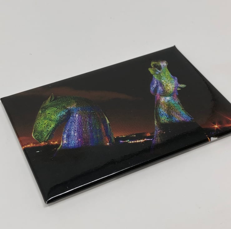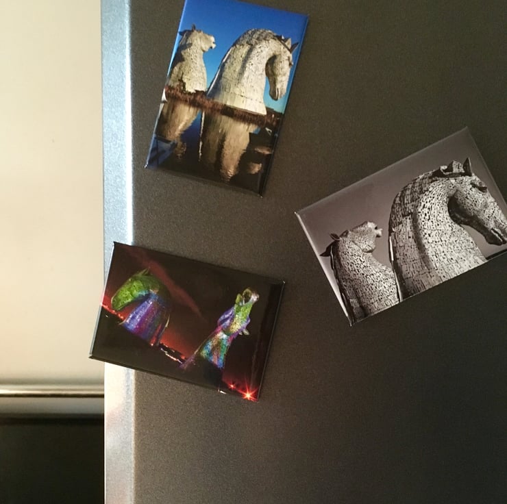 High quality fridge magnet featuring original photo of Andy Scott's Kelpies in Falkirk