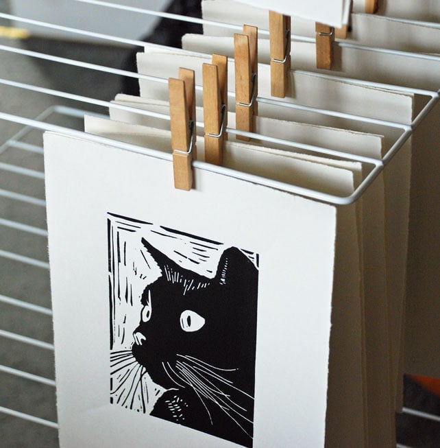 Every time an image is hand pressed the anticipation of the reveal when pulling back the paper can make for some wonderful, unique images. The weight of the press, amount of ink and paper used means every single print is different, such a refreshing change in this digital age.