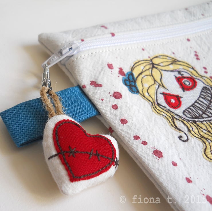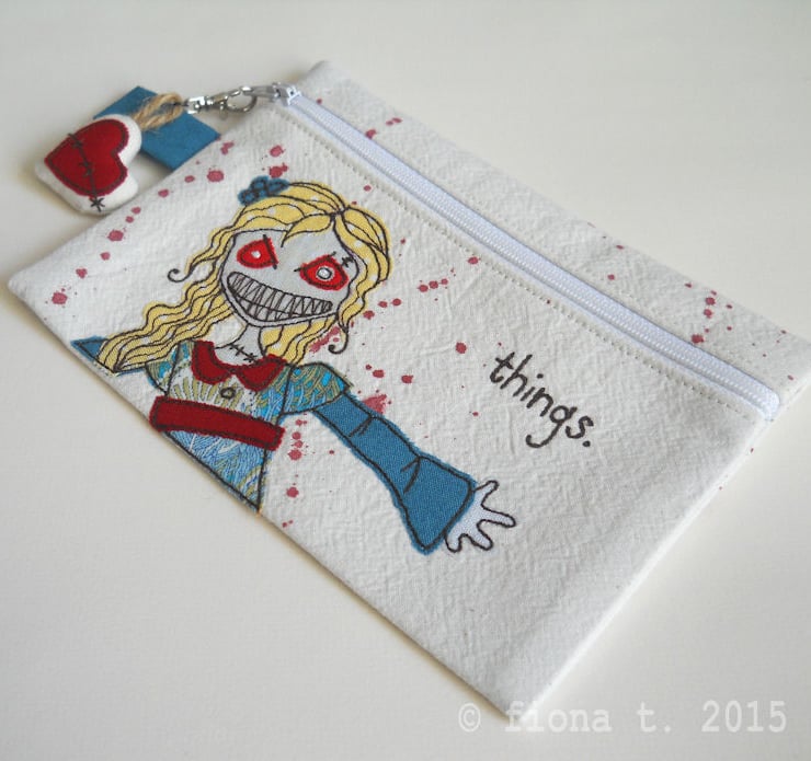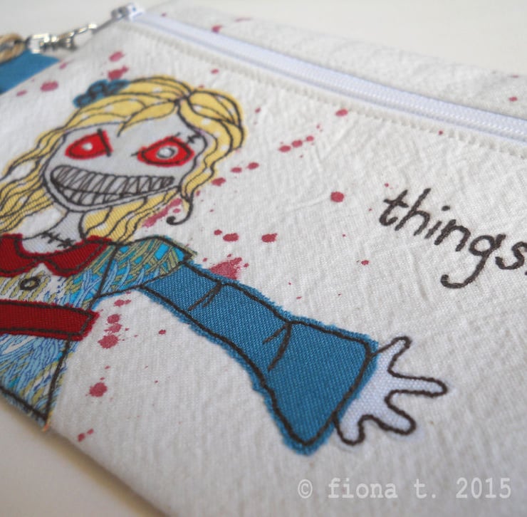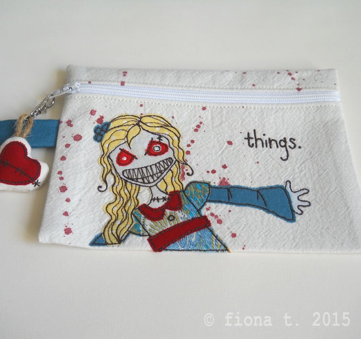freehand embroidered wrathful zombie purse or case. for “things”.