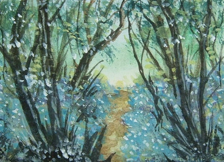 Bluebells original art painting miniature aceo landscape ref 39