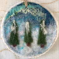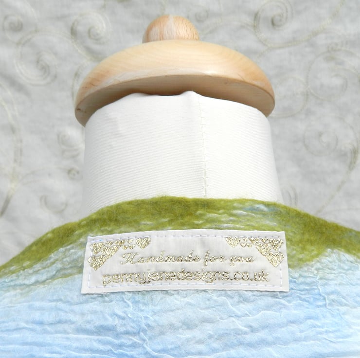 A beautiful white silk scarf/shawl acts as a background for a Japanese technique called Nuno felting. Soft merino wool is added to the silk by a system of wetting and rolling. The fibres find their way through the silk and become felted to it. Depending on the weight and depth of the wool added the silk then becomes scrunched up in random areas creating a unique piece that no one else will be wearing!