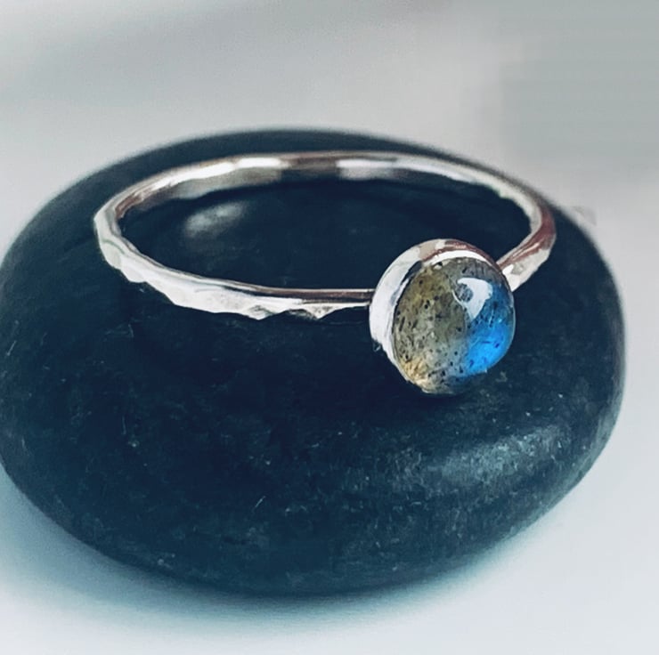 This skinny labradorite ring is made width of band 1.2 mm