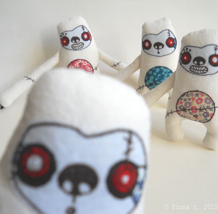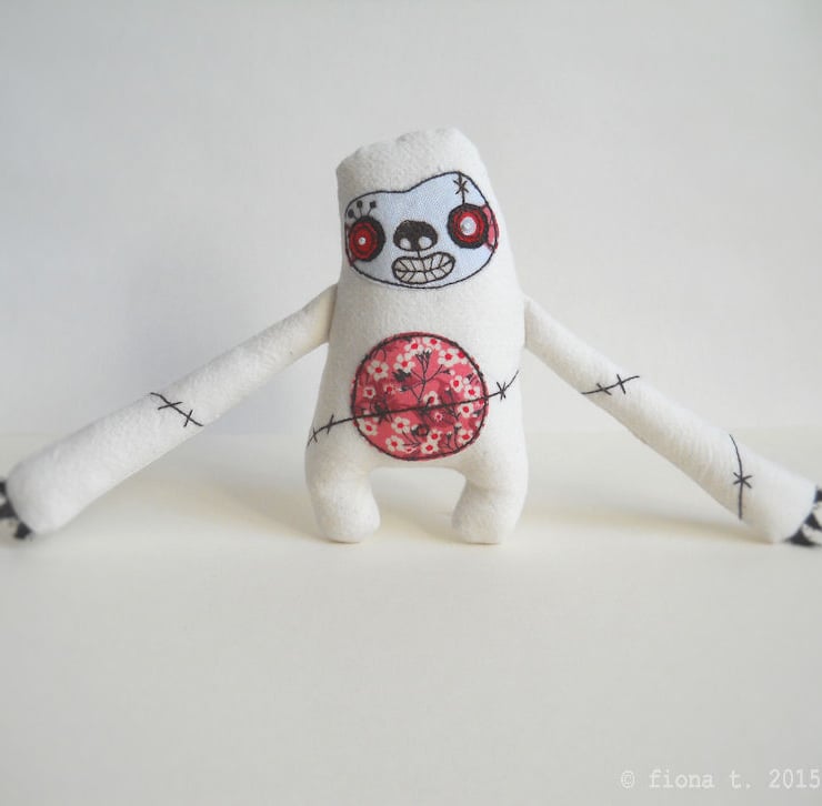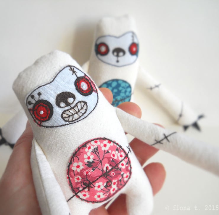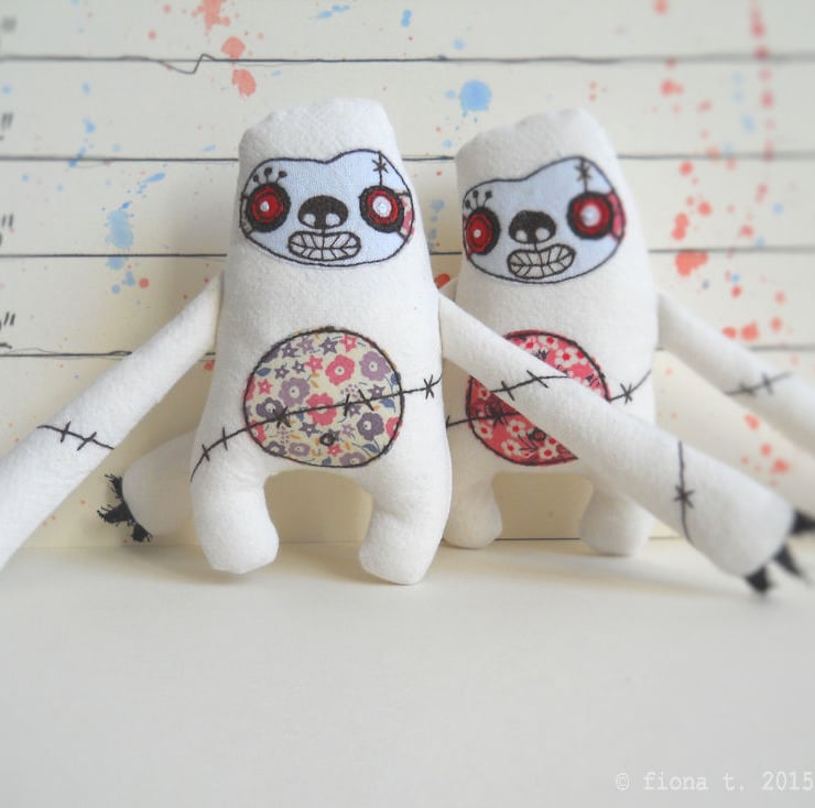 due to the very nature of free machine embroidery and handmade, each zombie will vary eeeever so slightly.