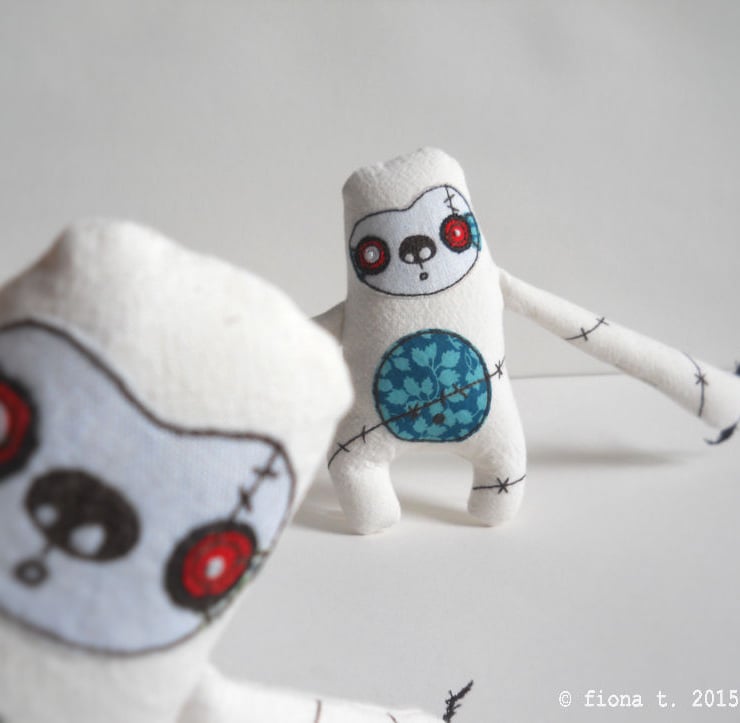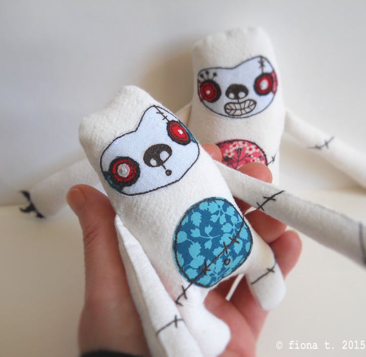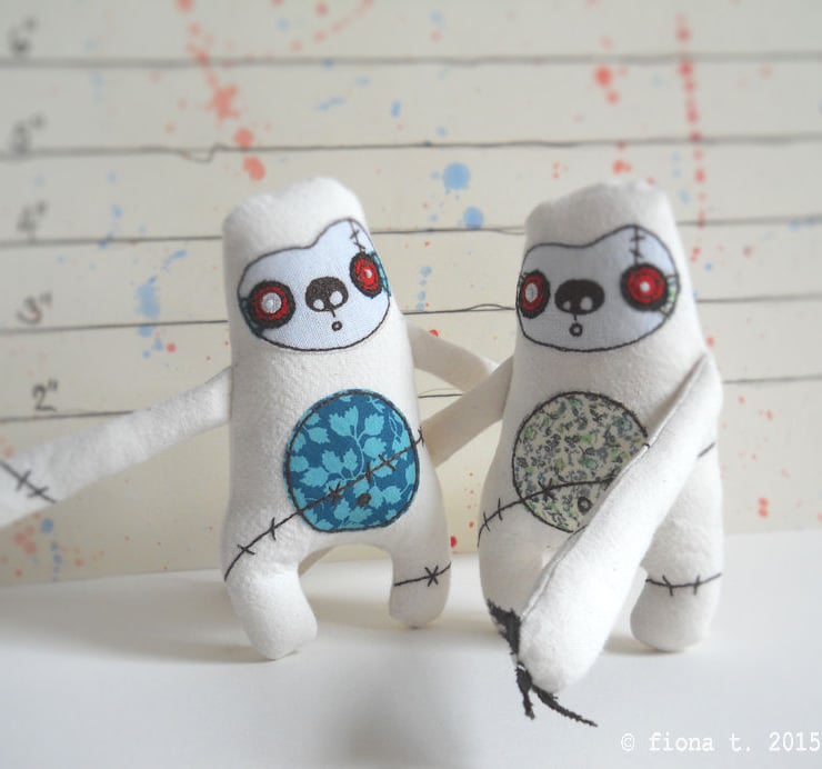 due to the very nature of free machine embroidery and handmade, each zombie will vary eeeever so slightly.