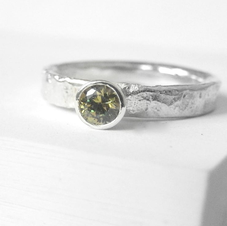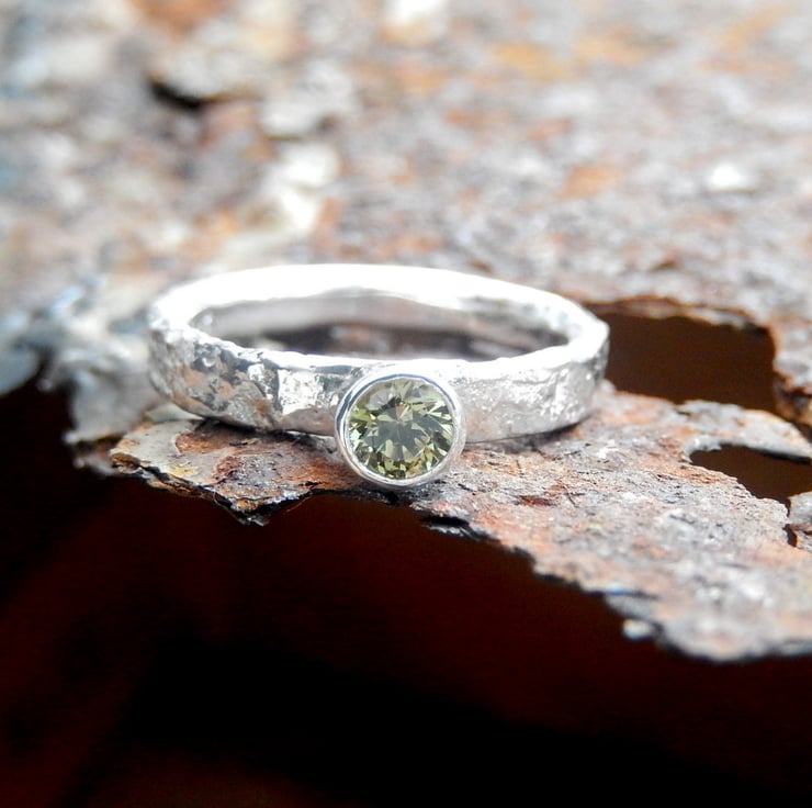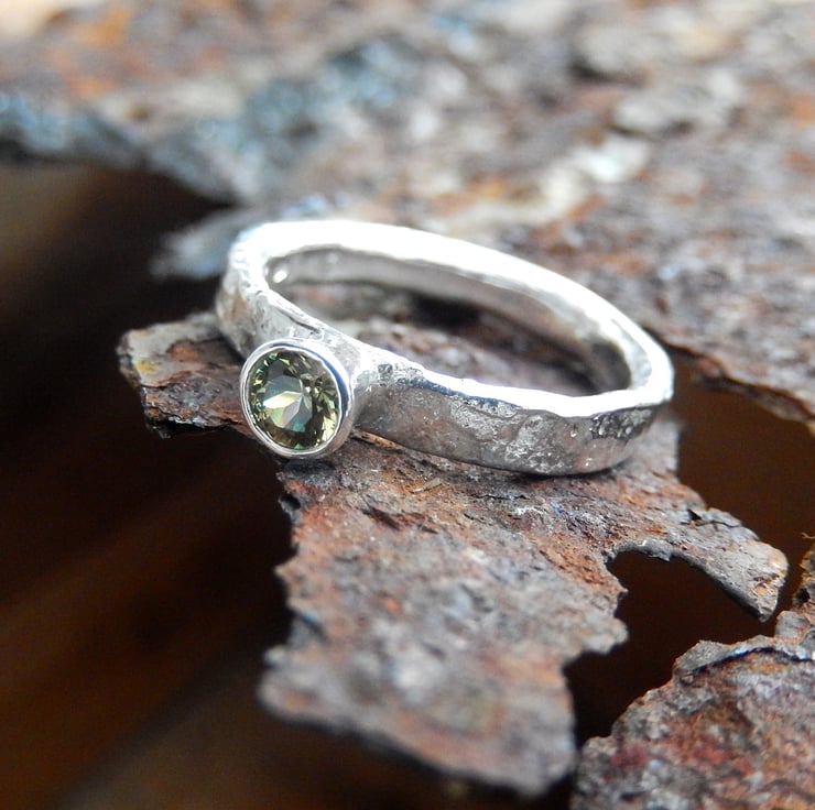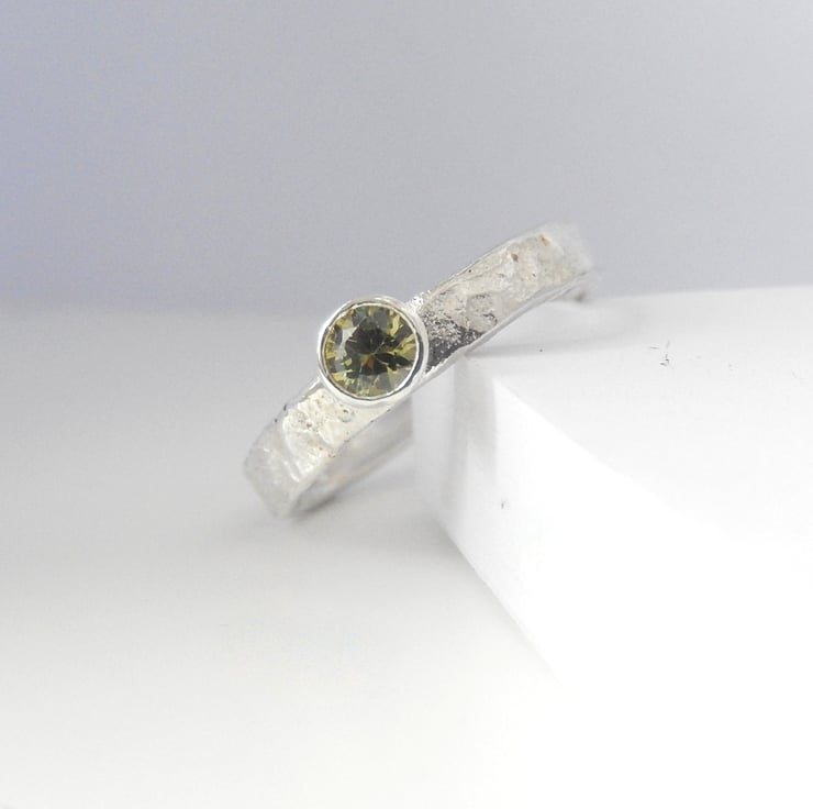 Sterling silver ring embellished with a 4 mm faceted green amethyst gem.