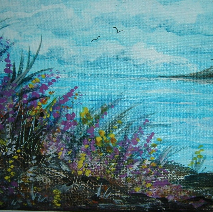 This is an original acrylic painting that has been created using quality materials. It will come in a clear polybag to protect it. This is an original and not a print. The painting measures approximately 7" x 5" and has been painted on canvas board. It is unmounted and unframed.