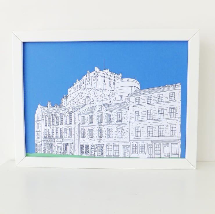 This Edinburgh print is on A4 sized paper (21 x 29.5 cm) which fits standard size IKEA Ribba frames so it is very easy to find a frame and pop it on the wall!