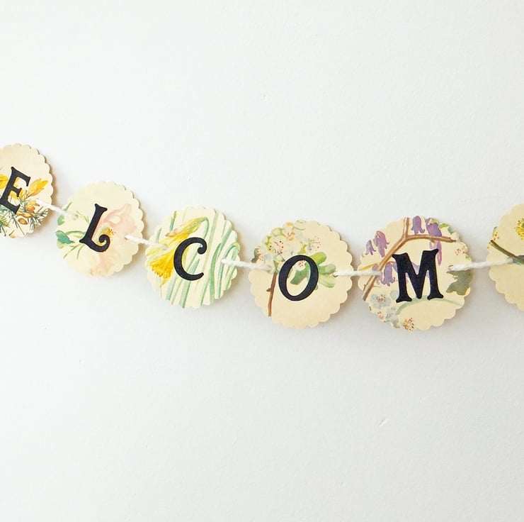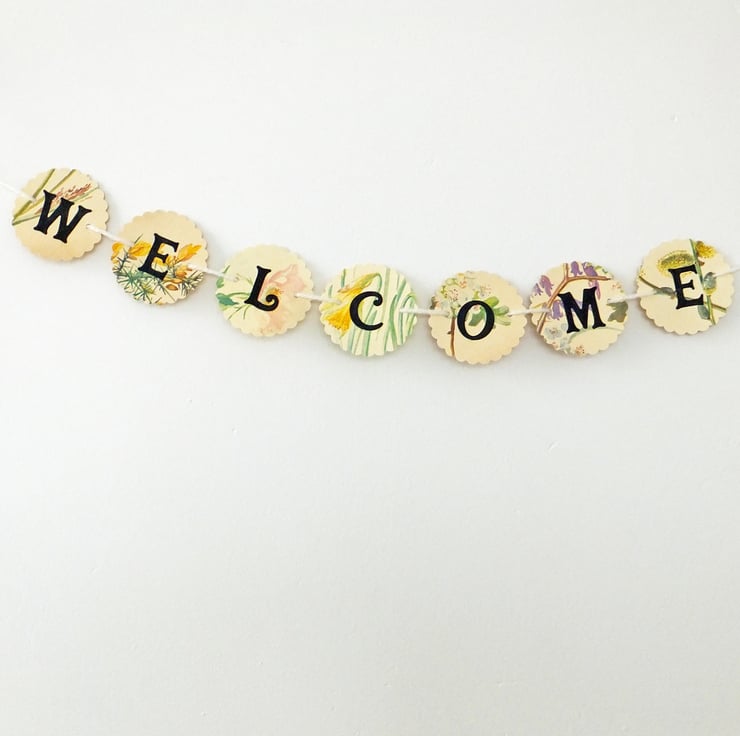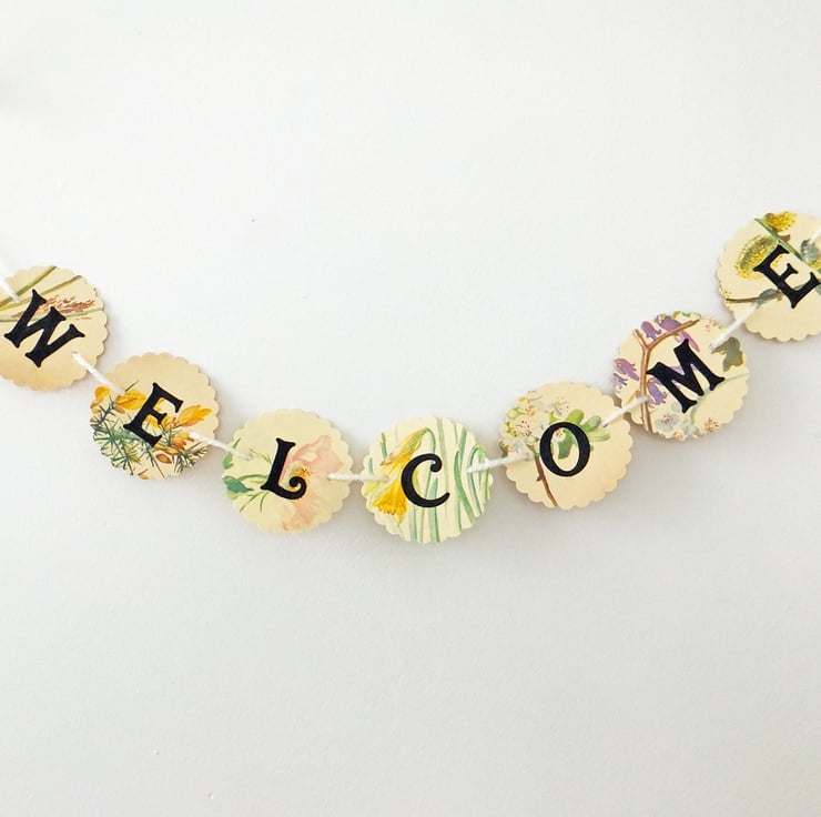 This lovely mini WELCOME bunting is gorgeous to hang in your home to welcome everyone who visits. It would also be pretty rustic wedding decor - perhaps strung on a basket of gifts for your guests when they arrive.