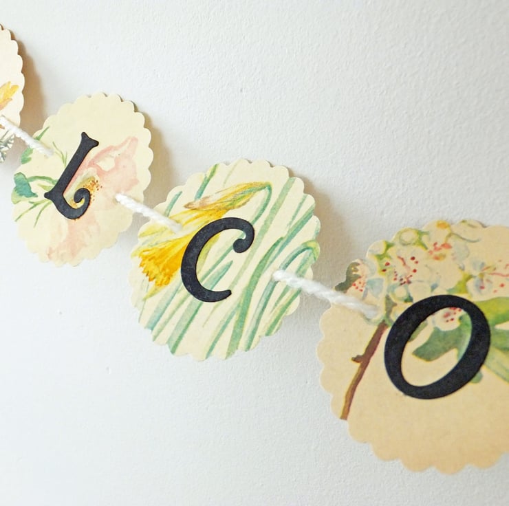 PLEASE NOTE - this is a SMALL garland. Your garland will have different pictures from those on the photos but will have an equally pretty selection of flora and fauna. The banner is designed to be viewed from one side only and isn't suitable for outdoors – unless you are certain the weather will stay dry!