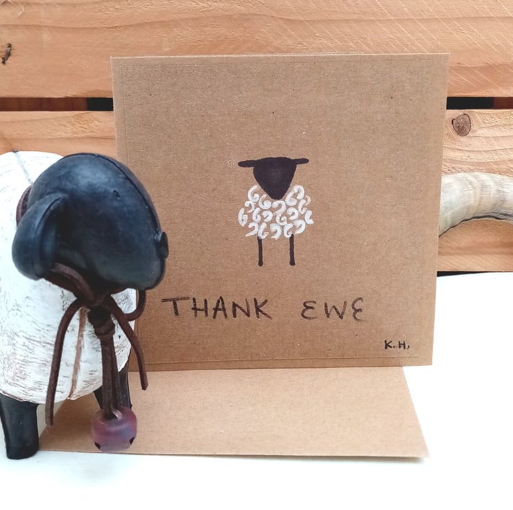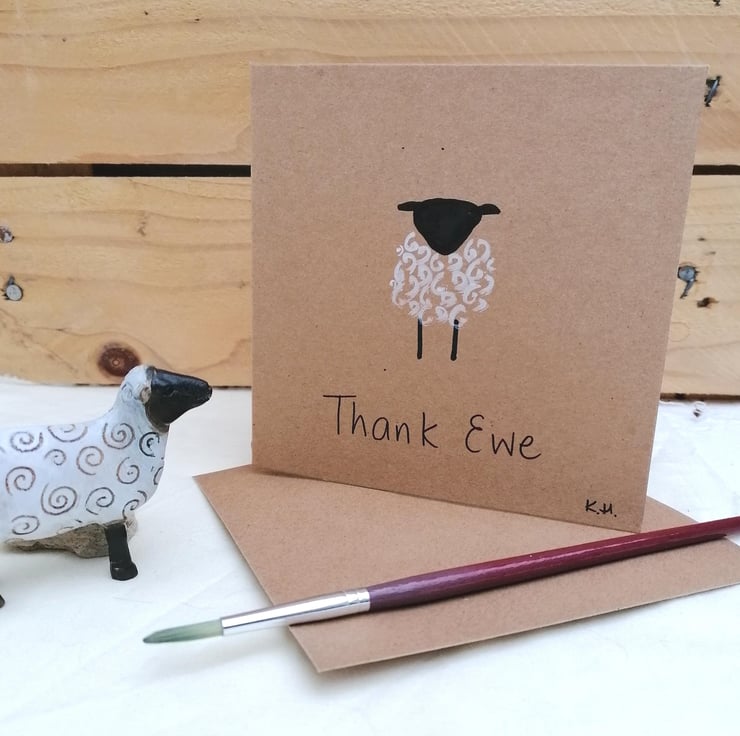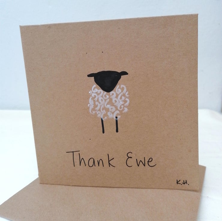 Inspired by sheep and a play on words Thank Ewe. Sheep are always popular and what nicer way to say thank you than by sending a hand painted card.
