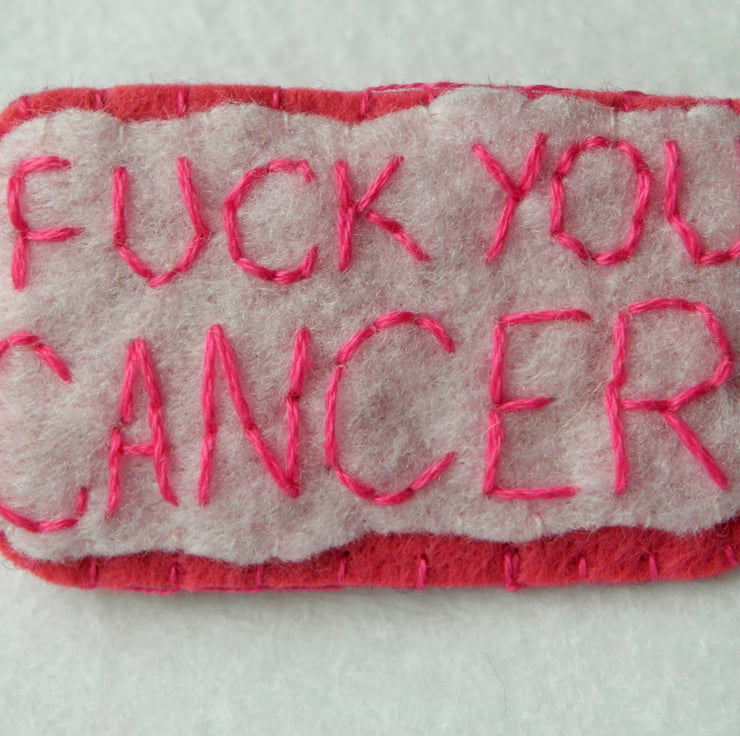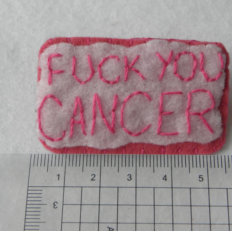 This wee felt badge packs a lot of attitude, and is a great reminder that some women won't submit to breast cancer without a fight...