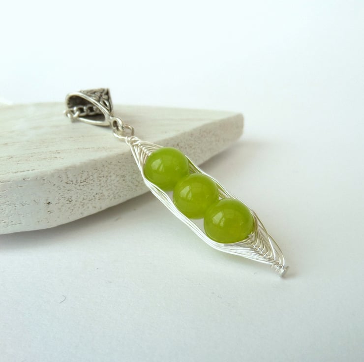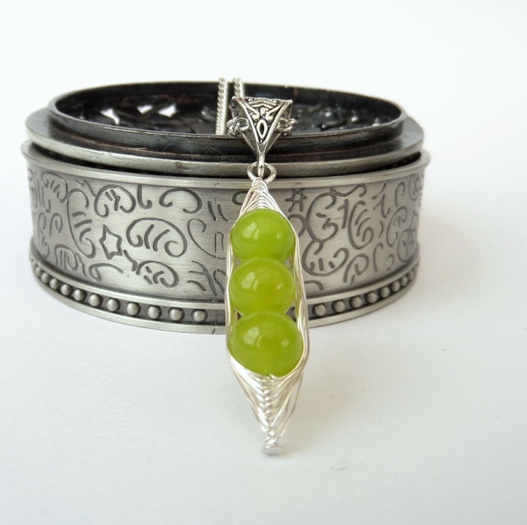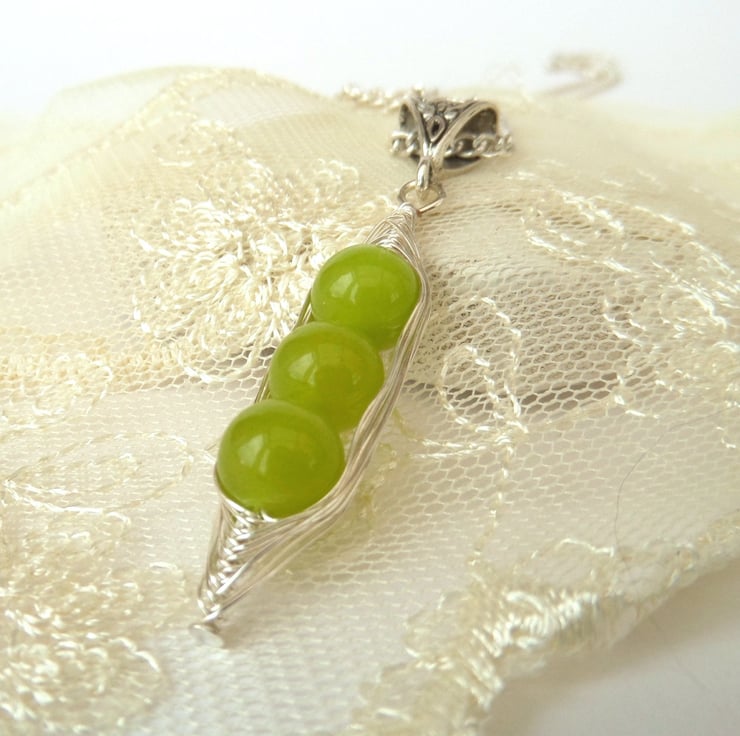 I can make it with various gemstones in a number colours, with up to four 'peas' at no additional cost. These include pink, white, green, hematite grey, turquoise, blue, purple black and red.