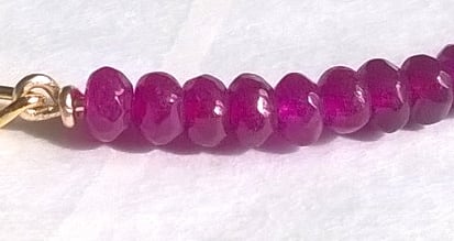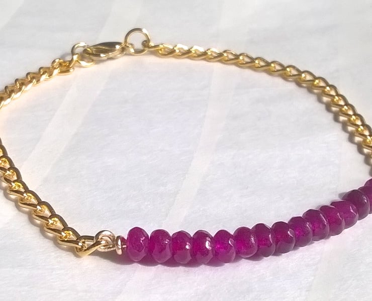 A delicate, pretty bracelet made with small semi-precious purple quartz faceted rondelles (each measuring 4x3mm) and gold plated chain.