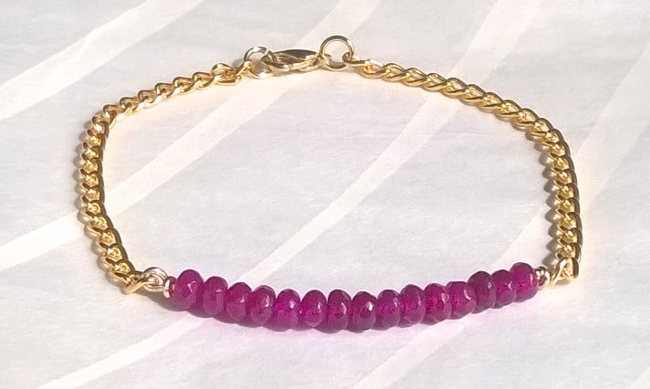 The purple beads are a lovely contrast to the gold chain. This is a very delicate bracelet, but robust enough for everyday wear.