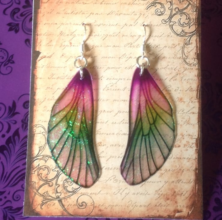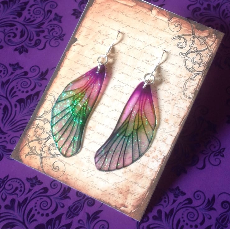 Beautiful purple Mackintosh style medium fairy wing earrings.