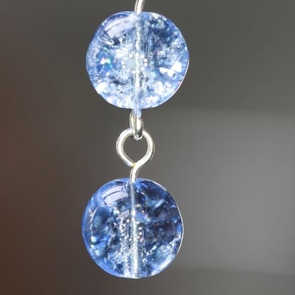 These pretty, dangly earrings are made from 8mm glass crackle beads in a light sapphire blue. The crackle effect inside the beads is produced during the manufacturing process. The hot glass beads are dipped into cold water, creating a beautiful light catching effect. Each bead is on its own looped pin to give the earrings plenty of movement. The earrings hang from silver-plated ear hooks. These could be changed to sterling silver at extra cost if required.