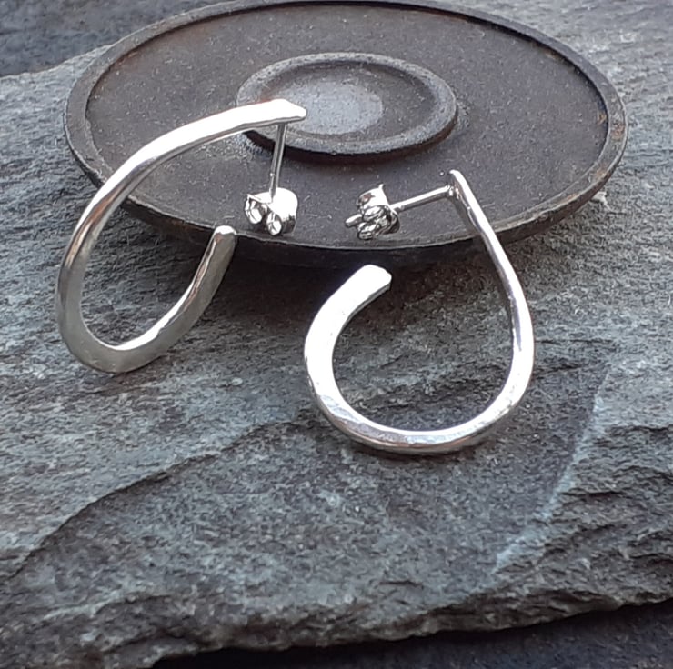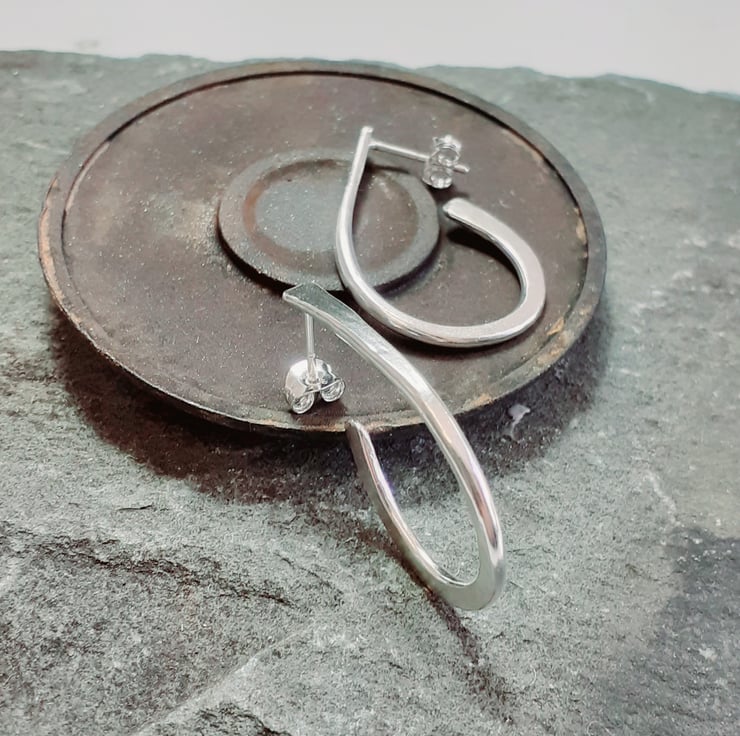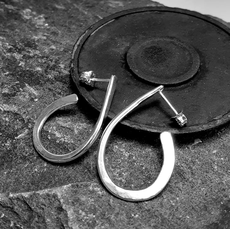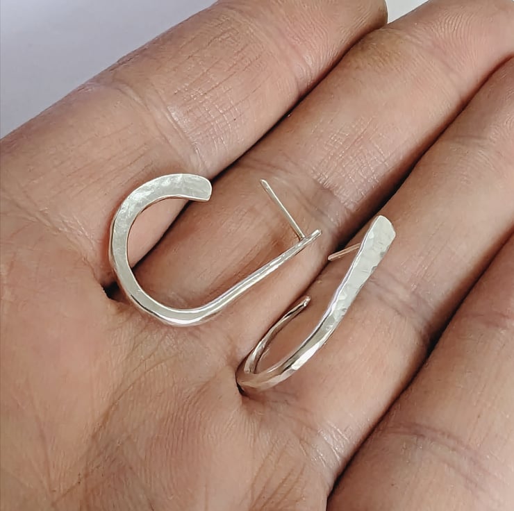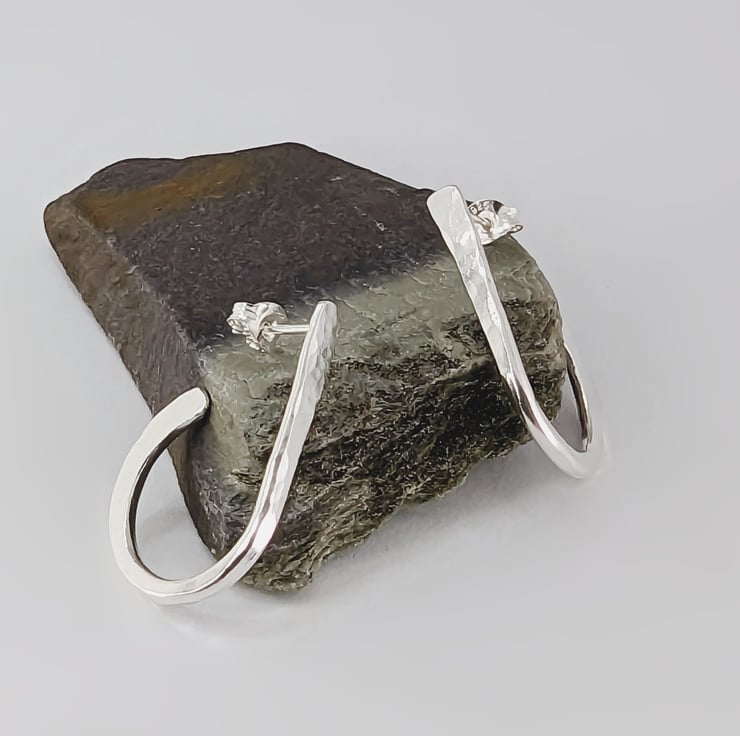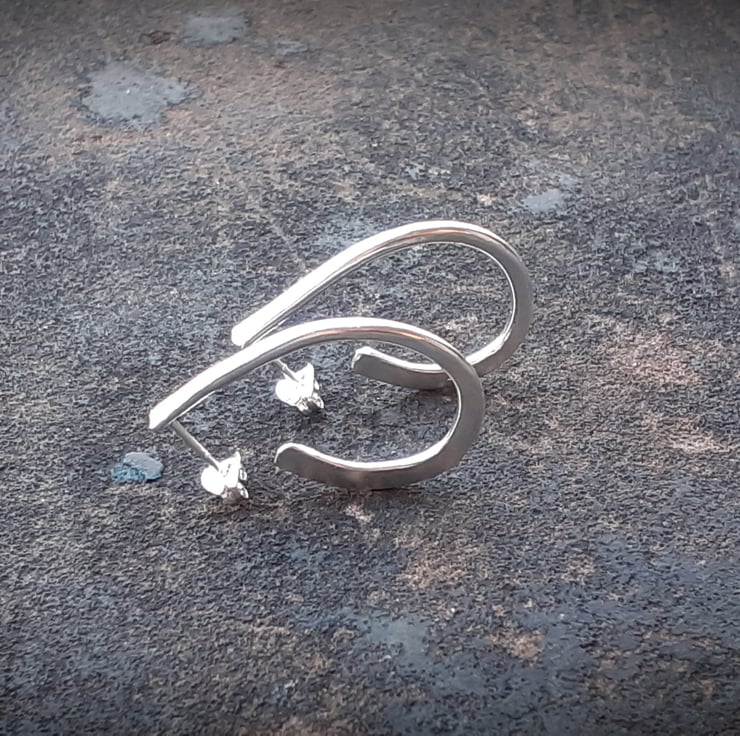 Hammering down sterling silver and forging into a long ARC shaped stud