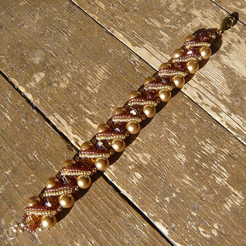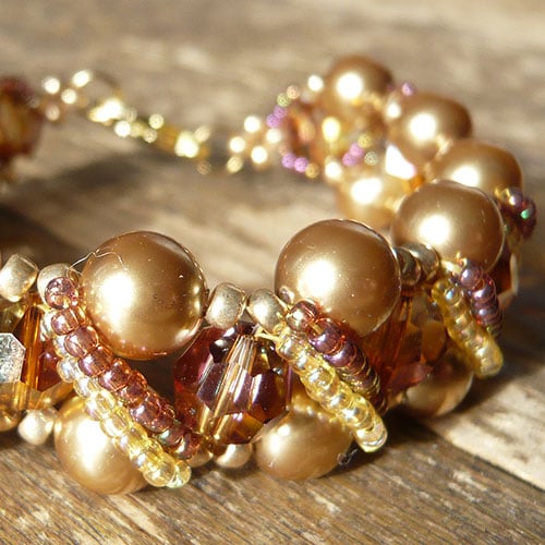 This bracelet is made of seed beads, Czech glass beads and acrylic beads.