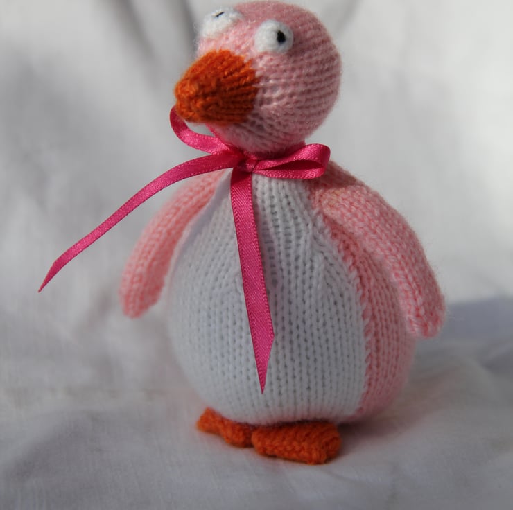 The basic penguin comes from an old knitting pattern from Woman's weekly that I inherited from my Mum, I knitted lots of these these back in the 70s and have knitted penguins for Christmas, but decided to let them out in Spring for a change with non-Christmassy embellishments. This little fellow is knitted on really fine needles to produce a smaller bird.