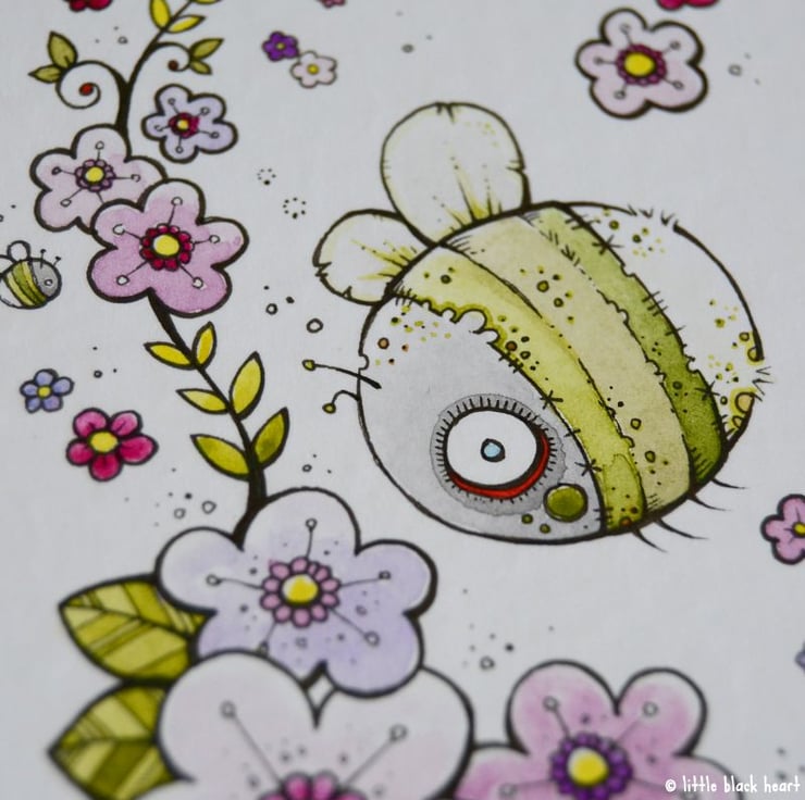 a cute little zom-bee, enjoying the flowers while on the lookout for braaains.