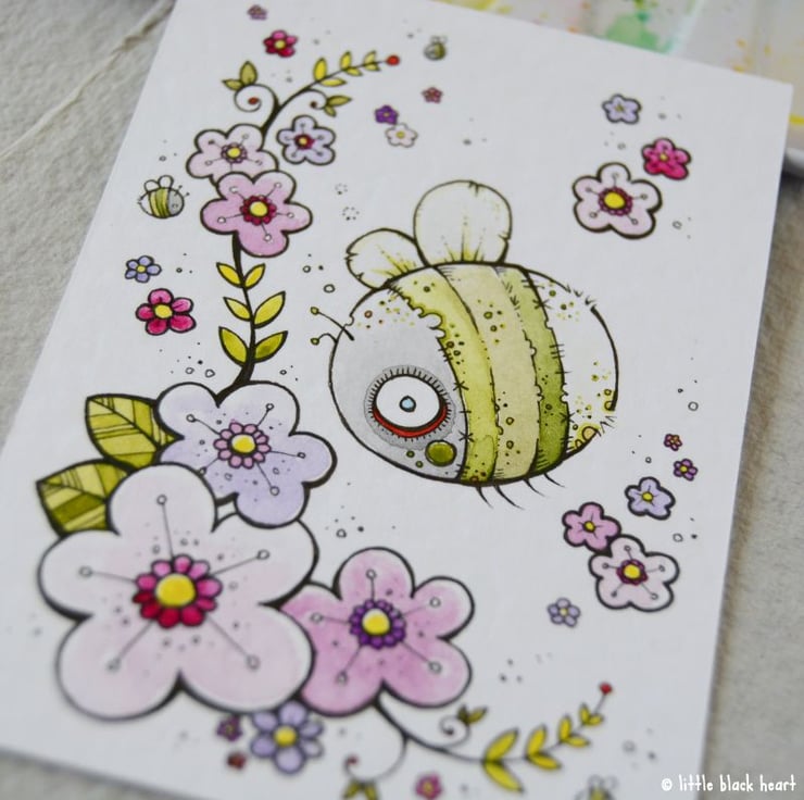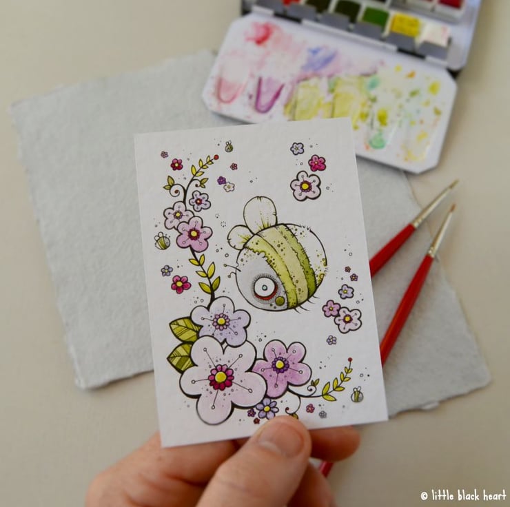 original artwork in artists pens and watercolour paints, on textured white 300gsm cardstock. drawn with a tiny 0.05 nibbed pen, and carefully painted with just the very tip of a tiny paintbrush!