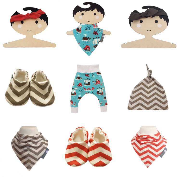 Complete an outfit with our Super cute easy to wear Bandana Dribble Bibs, Knotted Hats, Knotted Headbands, Scratch Mittens, Tees, Leggings, Relaxed Cuff Pants, Harem Pants and super cute soft soled Pram Shoes