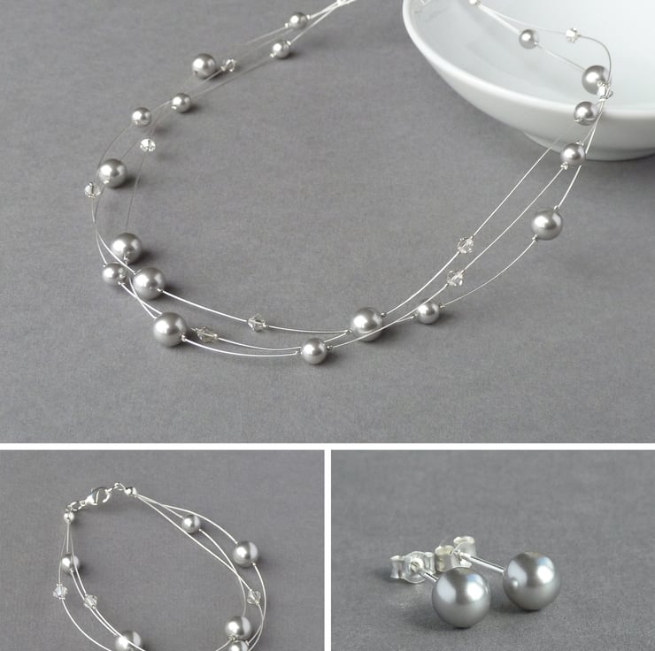 Silver grey floating pearl jewellery set: https://folksy.com/items/6802979