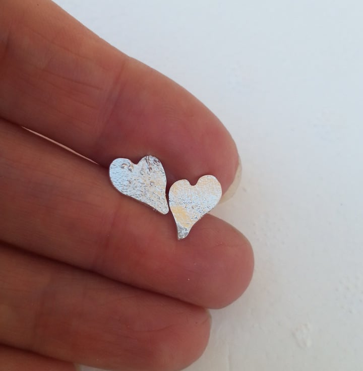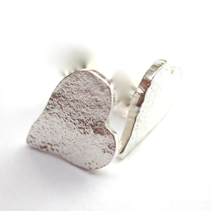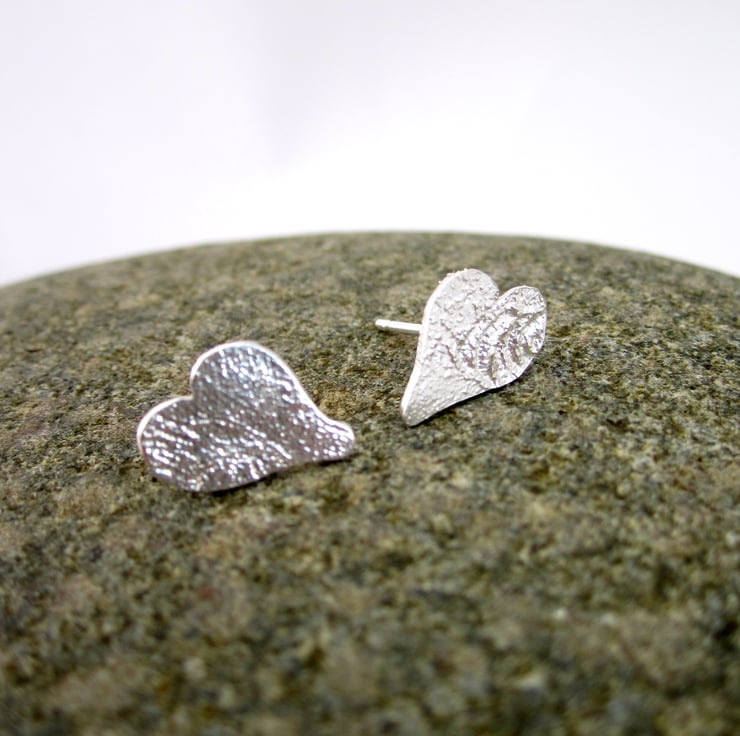 Reticulated silver made with Eco Silver , exposed to fire, then hand cut and polished to a soft sheen these reticulated asymetrical heart shaped studs are pretty enough for daily wear, but special enough for going out too.