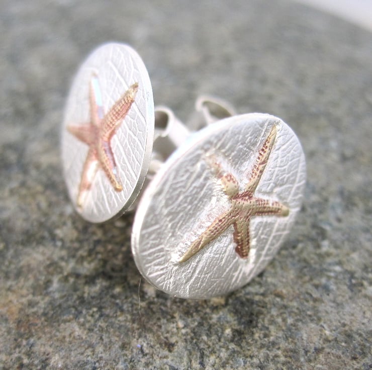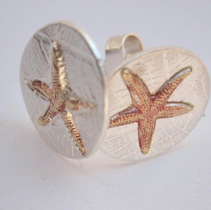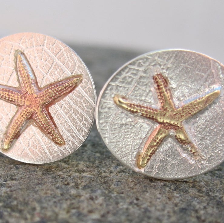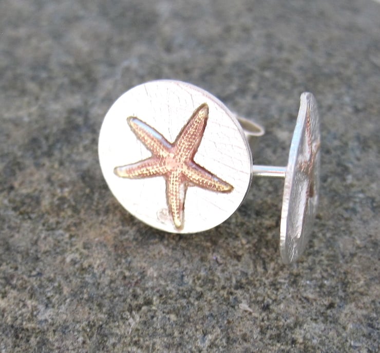 Polished silver imprinted with a leaf pattern and copper/brass Starfish Detail