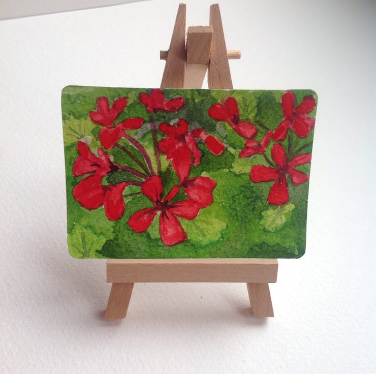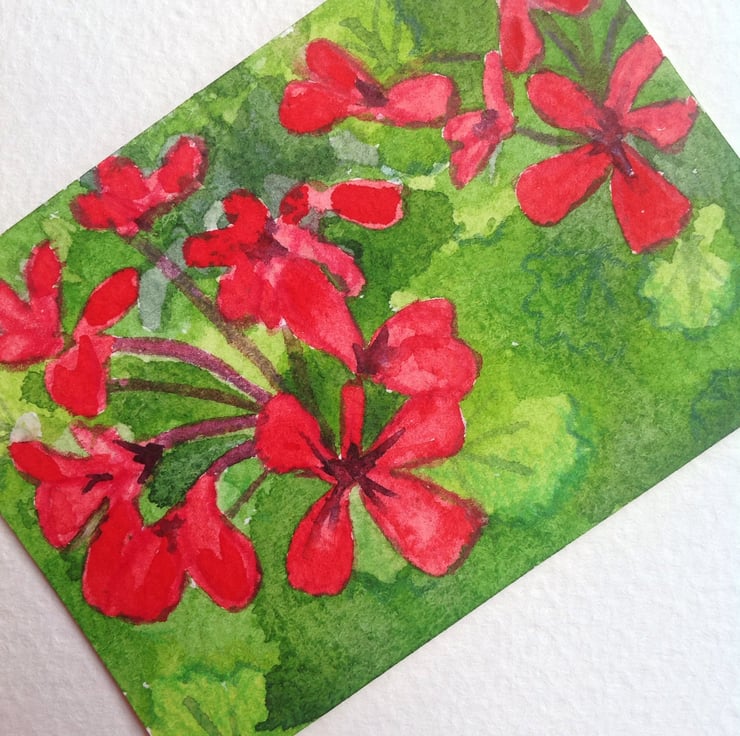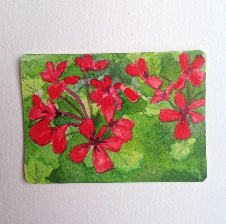 This ACEO is an original, impressionistic view of geranium flowers.